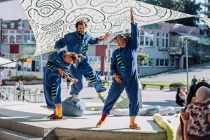 BRATISLAVA/NÁMESTOVO. Určite hrajú zvieratá. Naozaj? Áno, veď sa tak aj hýbu, zamýšľajú sa deti podvečer na tanečnom predstavení Ostrov! českého súboru Burkicom.